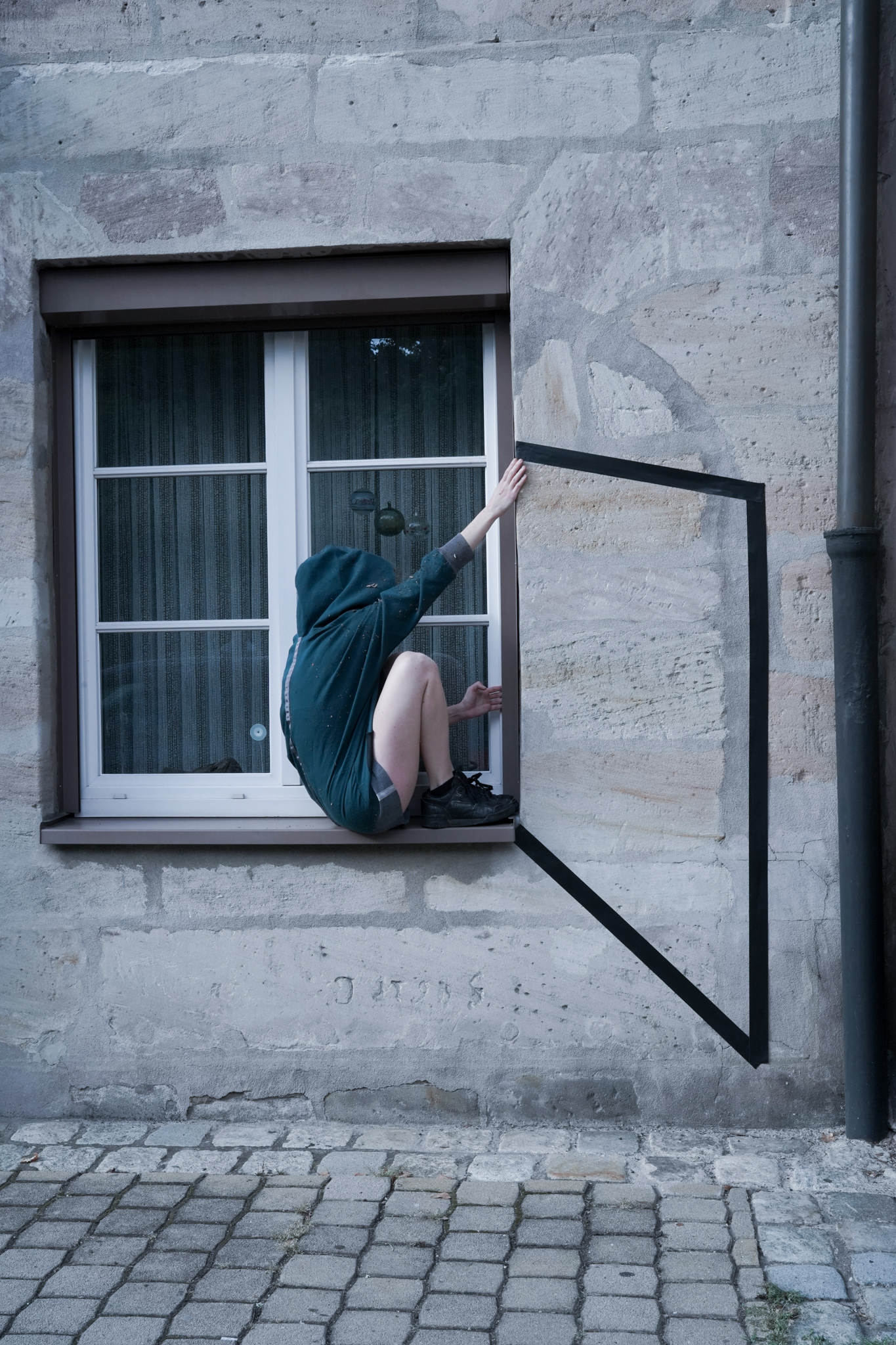 TAPE RIOT is built on the reality of urban space and the daily flow of those who inhabit it. Initially it merely causes the onlookers' gaze to shift slightly, prompting silent curiosity: Is this normal? Is this real? Two dancers disrupt the pace of passersby pushing the degree of dissociation still further. Lines are drawn splitting the space ... Are they defining a frame of reference or opening up perspectives to the beyond? Sounds intermingle and the roadsigns blend in; the traffic flow has switched direction. This dynamism triggers the strange sensation of having seen the urban space quite differently and with a smile... Did it change our way of looking at things? Or just our point of view?